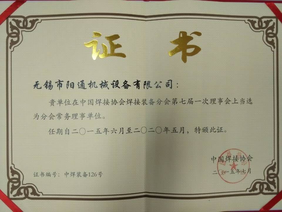 熱烈祝賀無錫市陽(yáng)通機(jī)械設(shè)備有限公司連任中國(guó)焊接協(xié)會(huì)焊接裝備分會(huì)常務(wù)理事單位